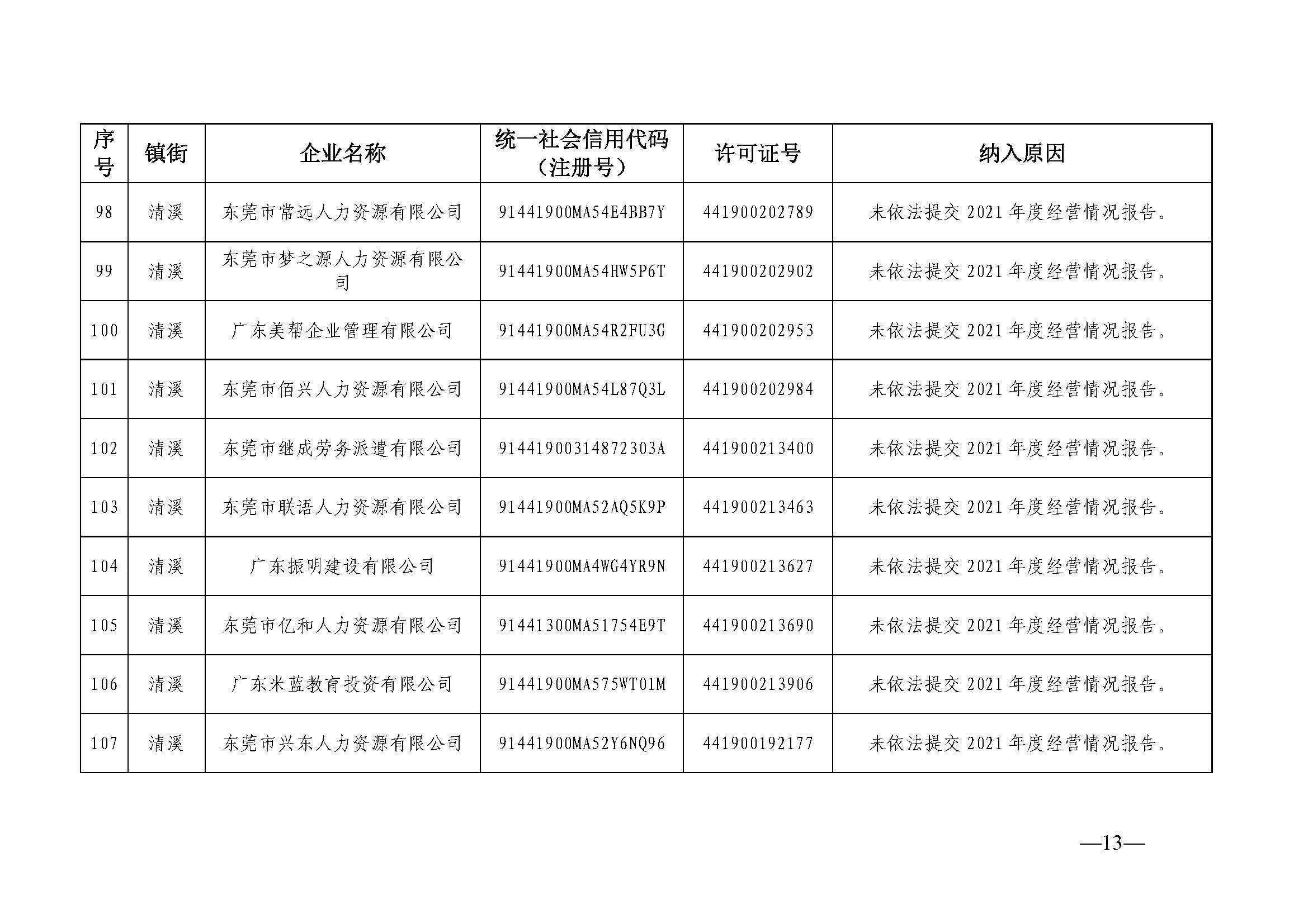 关于东莞市劳务派遣单位经营异常名录(第二十期)的公告