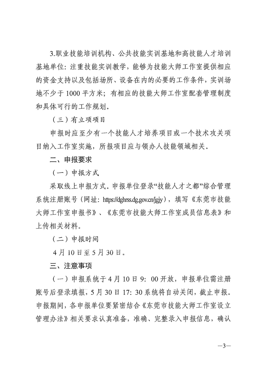 2023年东莞市技能大师工作室申报公告
